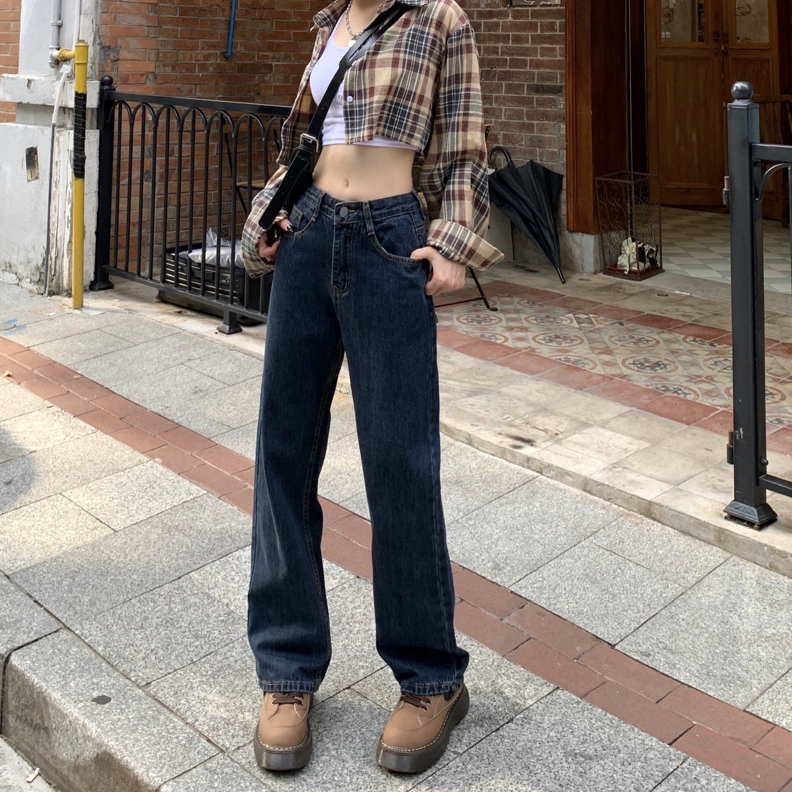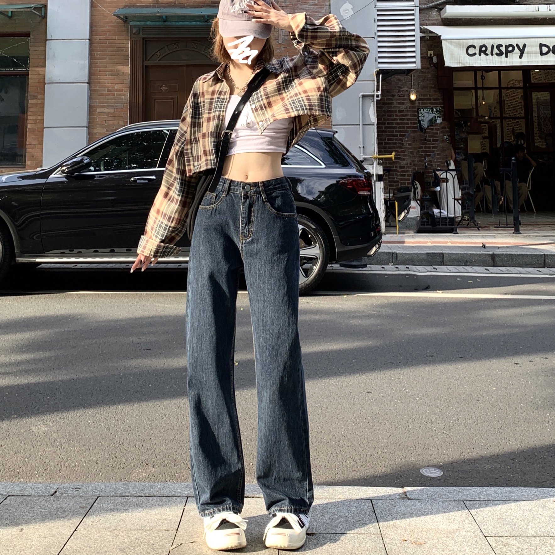 145小矮个子蓝灰色牛仔长裤150高腰显高宽松直筒阔腿裤xxs码秋女 - 阿华家小个子女装