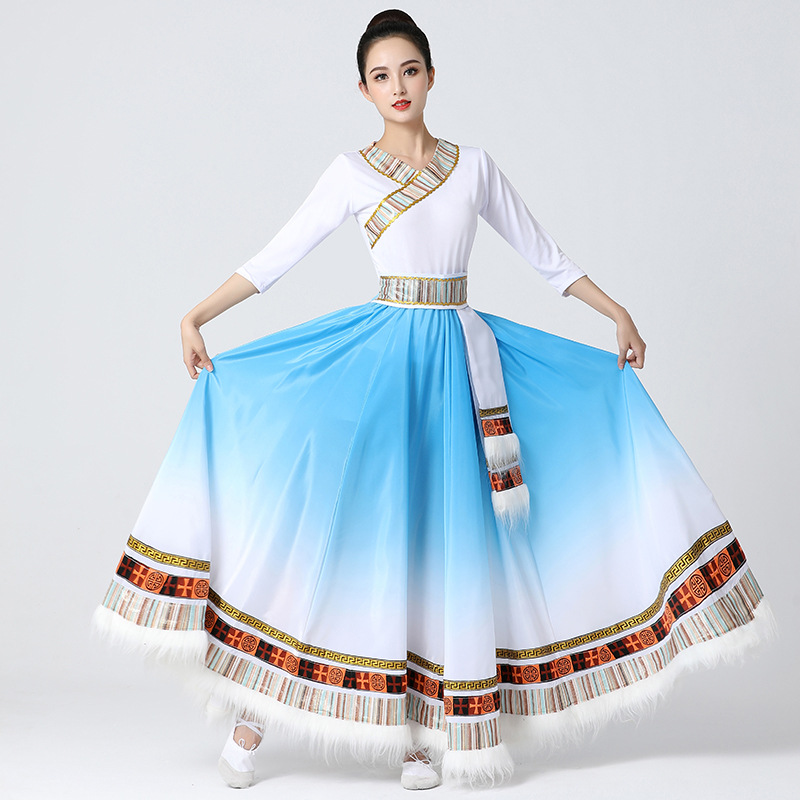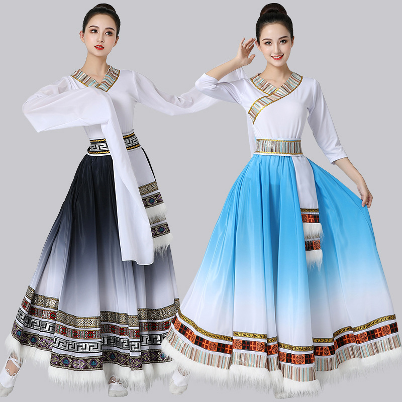 藏族舞蹈服半身裙学生艺考练习裙广场舞表演服少数民族风女大摆裙 - 爱尚衣生活馆