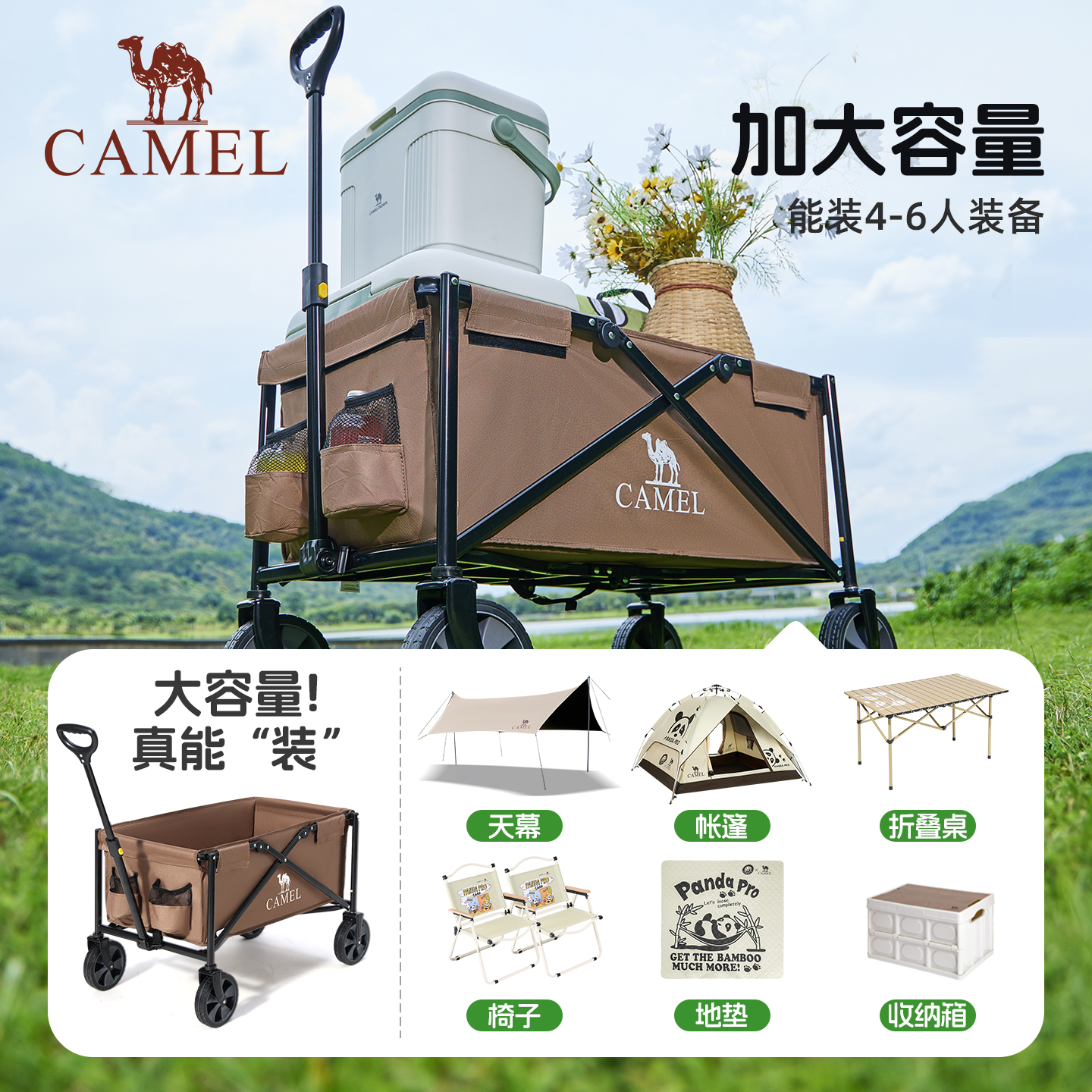 camel户外精致露营装备营地车野餐便携折叠拖车摆摊拉车野营推车
