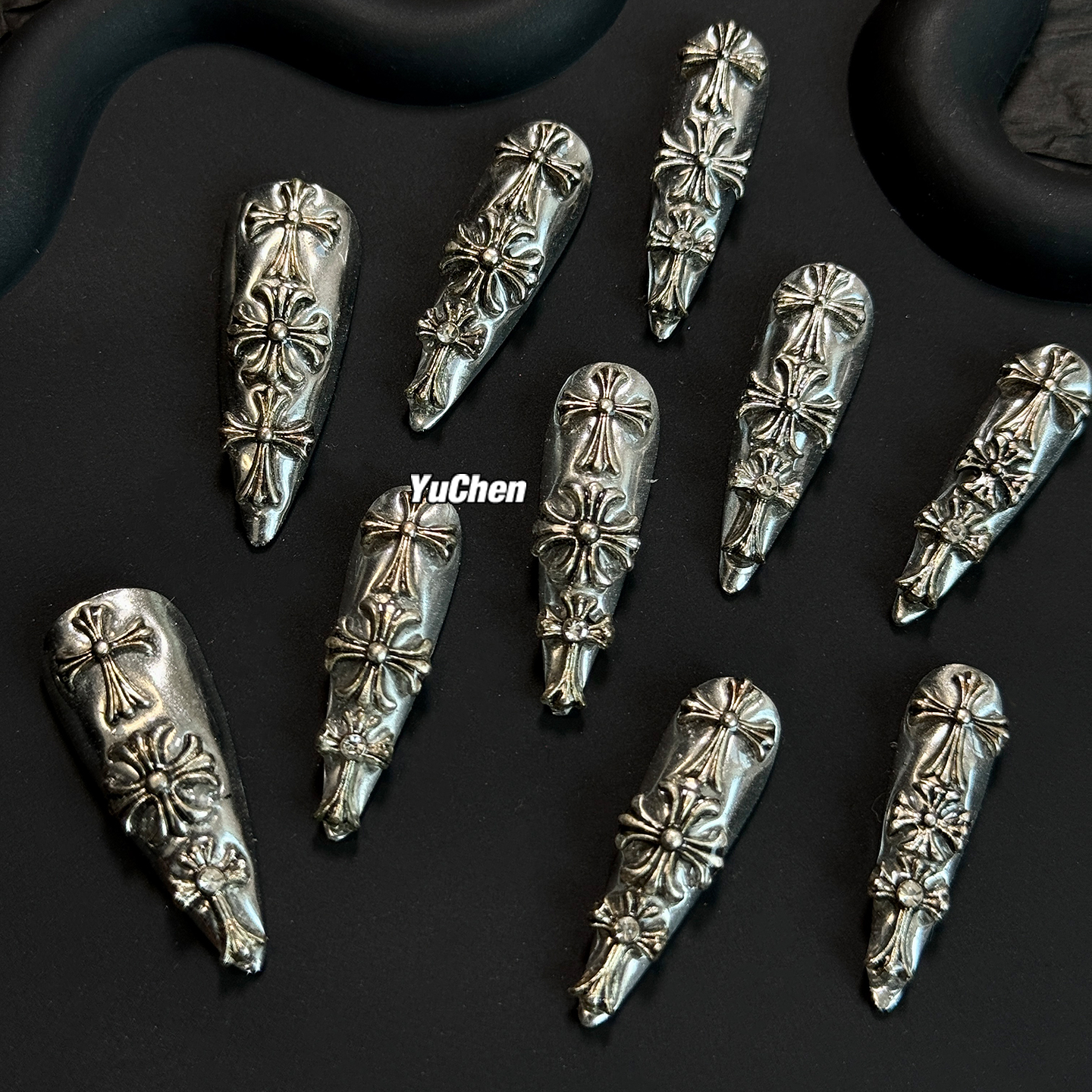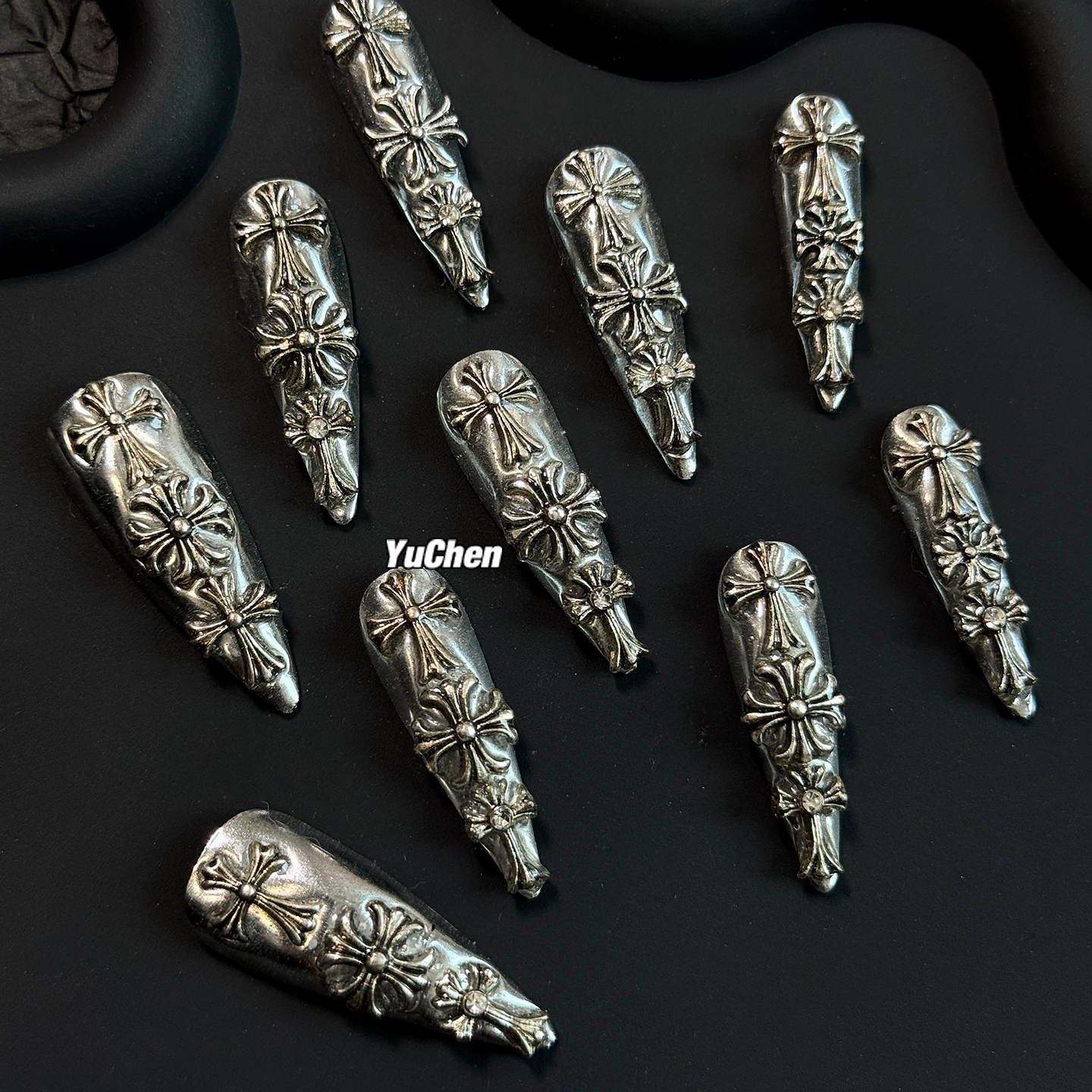 屿辰|金属姬甲 美甲穿戴甲十字架克罗芯液态银镜面纯手工原创设计 - YUCHEN屿辰