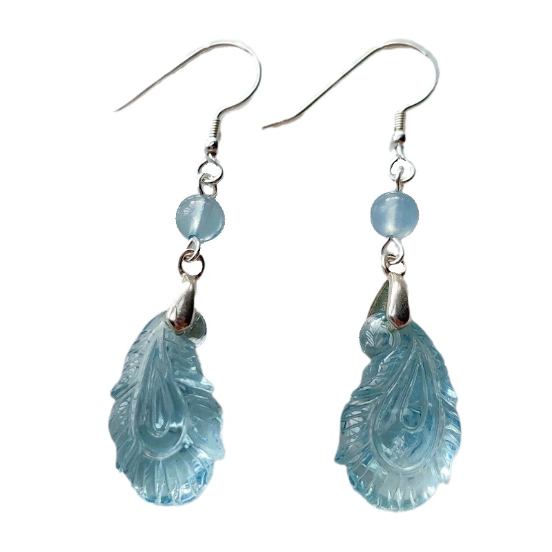 您的位置:他他商城  >  配饰  >  天然冰种海蓝宝耳饰无优化猫眼级摩根石凤翎耳环长款轻奢纯银耳坠