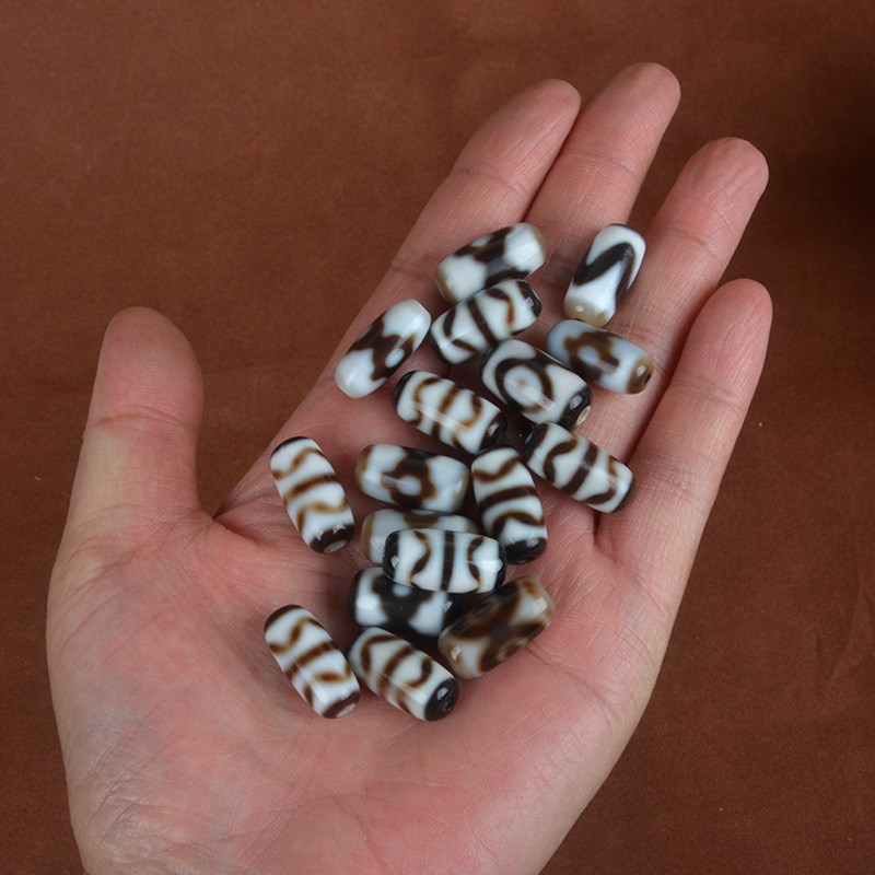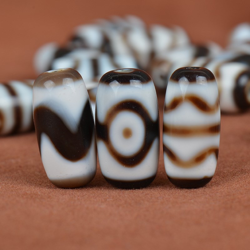 臧传老料玛瑙g天珠桶珠配珠锁骨手链配饰坦诚三眼虎牙水纹20*10m - tb5621857437