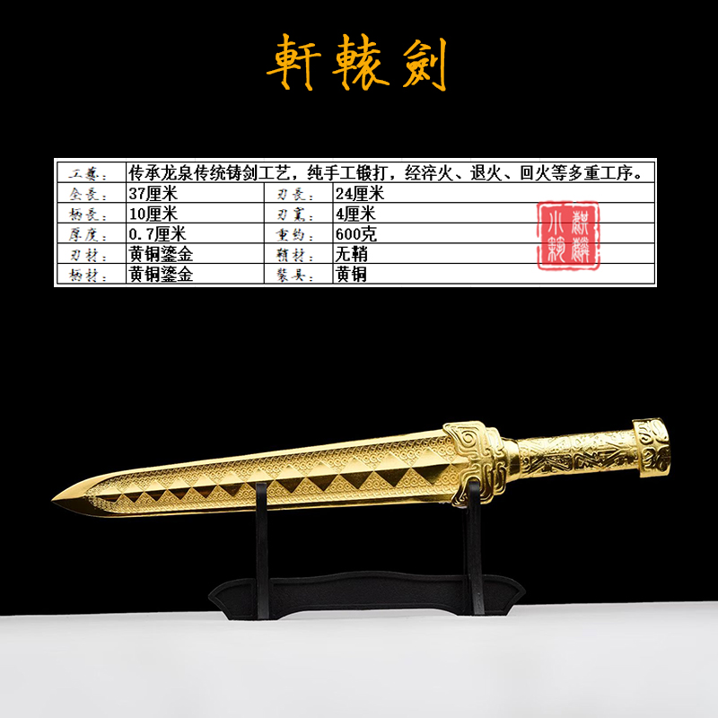 龙泉新款古风一体成型黄铜雕刻轩辕剑短剑收藏镇宅送礼小剑未开刃 - 龙泉麒麟小筑宝剑厂