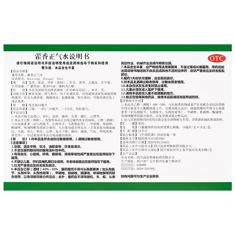 批发】藿香正气水10支肠胃感冒头痛解表化湿理气工地非府庆逢春 - 弘毅人生大药房旗舰店