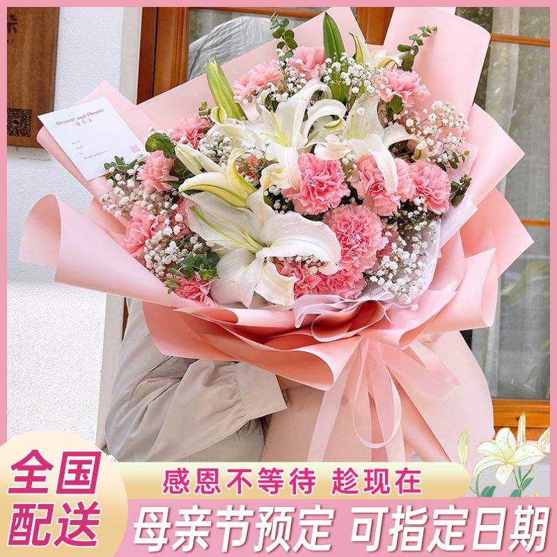 母亲节康乃馨花束鲜花速递同城配送江苏省南通市崇川港闸区通州区 - 蓝菲花卉旗舰店