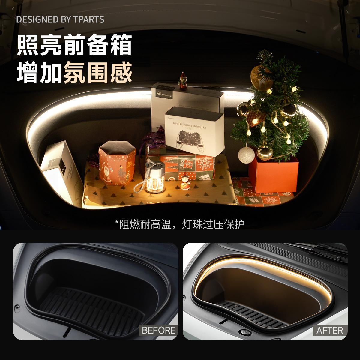 TPARTS适用特斯拉焕新版Model3/Y/X前备箱氛围灯改装丫配件 - TPARTS旗舰店