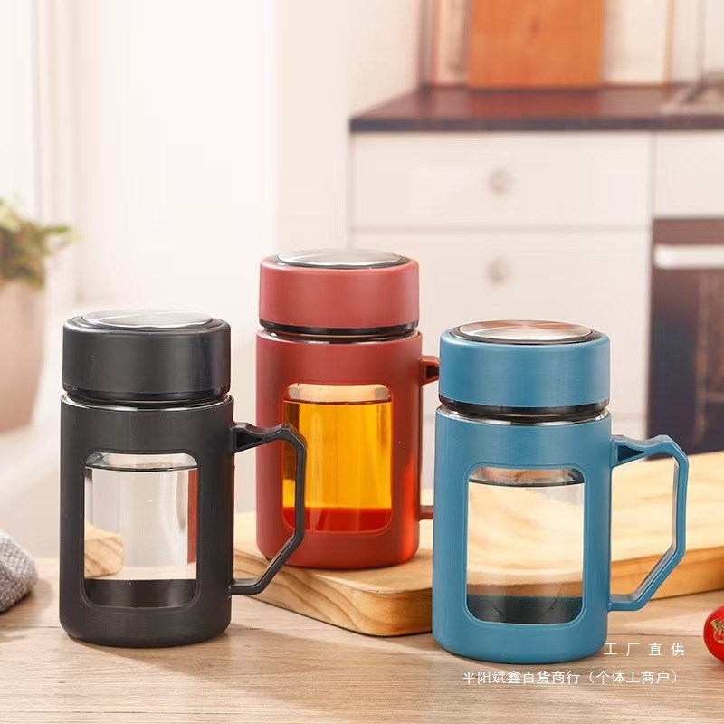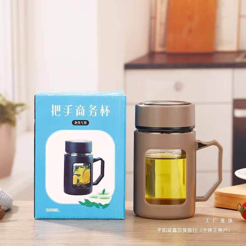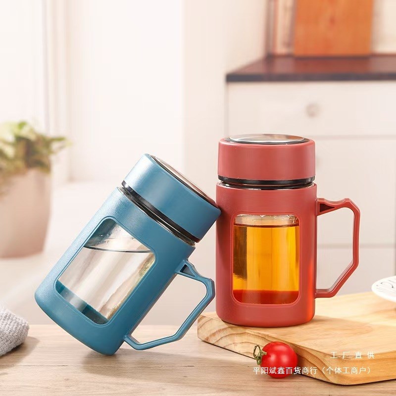 玻璃杯男女大容量透明水杯带把便携茶杯防L烫泡茶杯子办公室商务 - 山合坊日用品的小店53