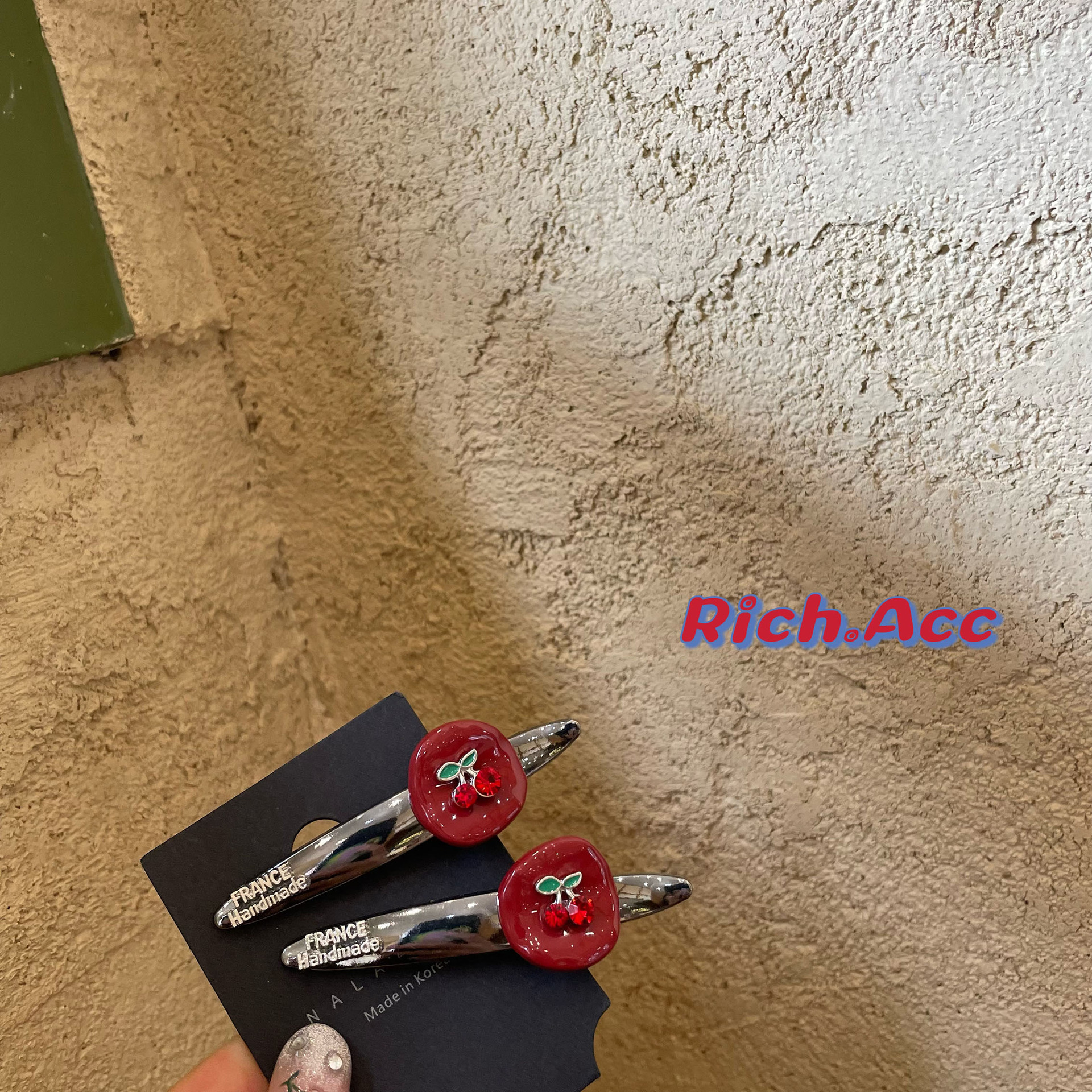 【实拍】安吉拉红高级感金属樱桃发夹日韩冷淡风简约气质百搭边夹 - 好运来小众饰品
