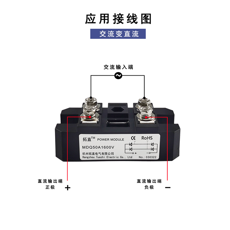 单相整流桥50A MDQ50A1600V MDQ50-16桥式整流器12V24V220V1000V - 杭州拓直电气有限公司 企业店铺