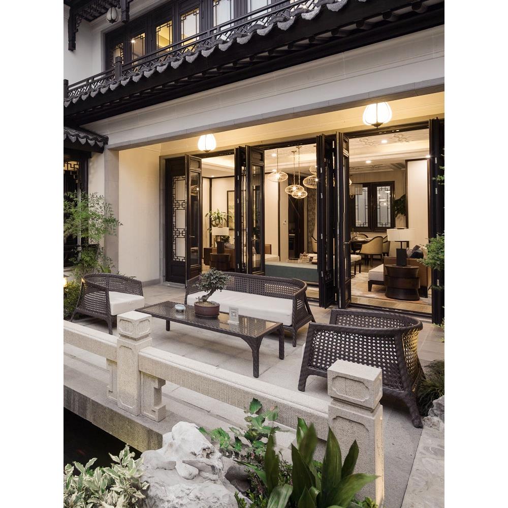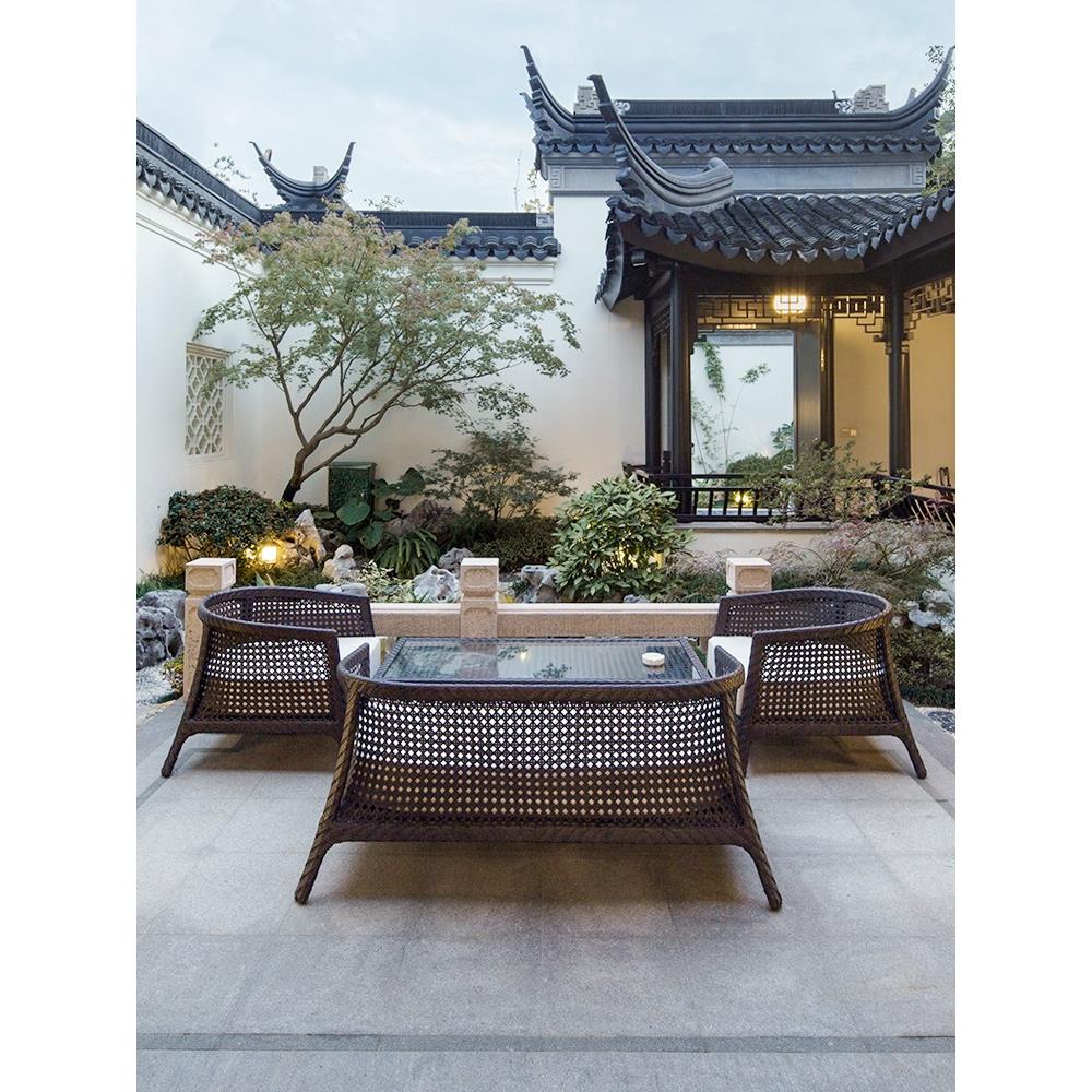 您的位置:他他商城  >   >  新中式藤编沙发户外藤椅别墅露天花园商业街庭院仿藤沙发组合家具