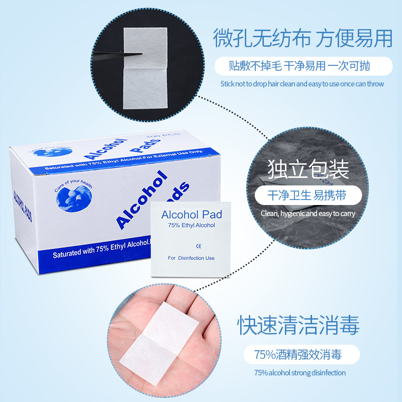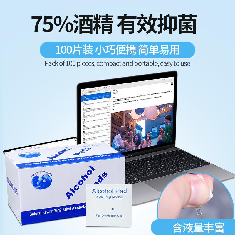 75度一次性酒精棉片手机消毒棉片大号旅行清洁耳洞单独包装100片