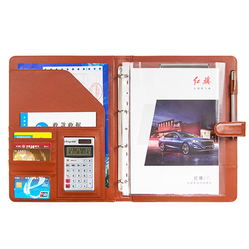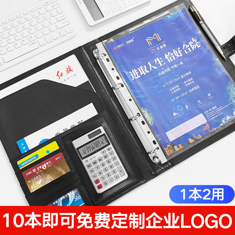皮质多功能文件夹带计算器S店汽车楼盘销售夹办公经理夹定制 - 威虎假狐商城