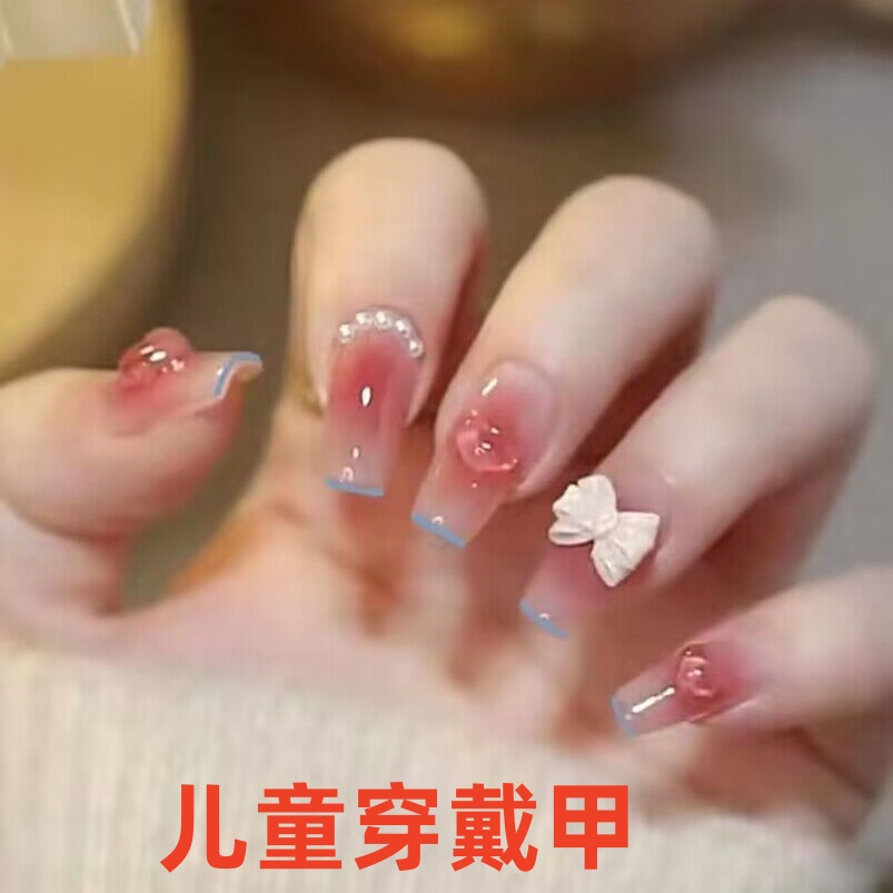 儿童穿戴甲美乐蒂蝴蝶结假片9岁小孩12手指甲10岁学生美甲小朋友 - 会变漂亮的美甲店