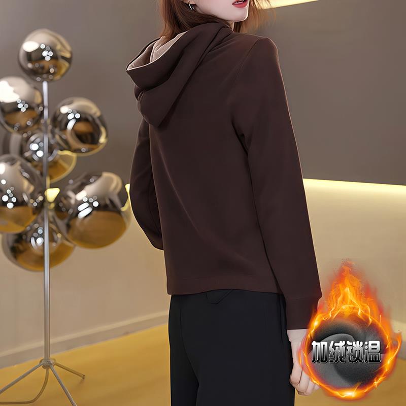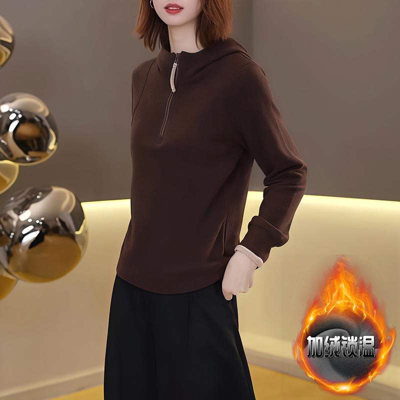 ROUMIKL设计感小众半拉链连帽加绒加厚卫衣女士秋冬款欧货极简风 - diyi小清新女装 11