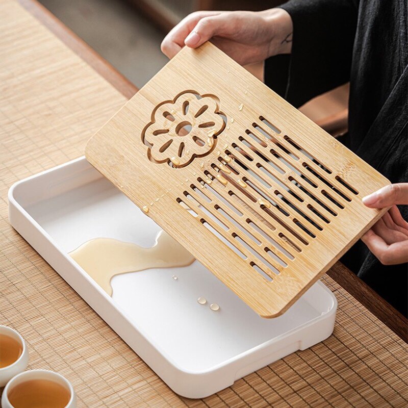 家用简约功夫茶具茶盘套装长方形储排日式塑胶竹制小茶台沥水托盘 - 老二茶具