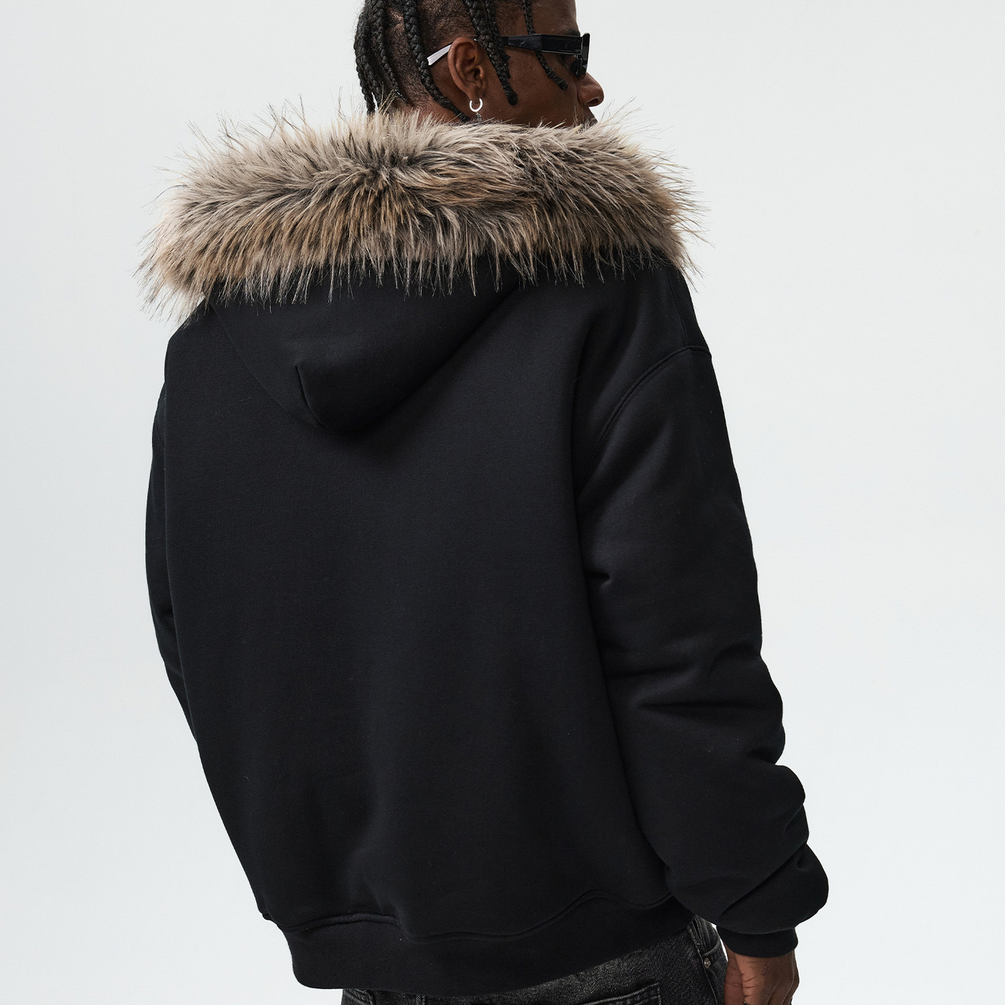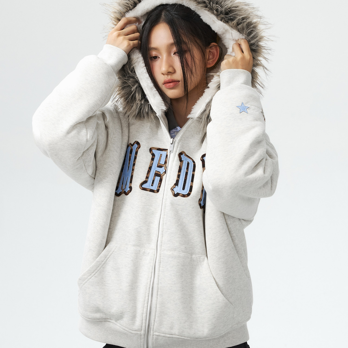 MEDM 马毛贴布座山雕连帽卫衣棉服美式休闲男女保暖毛领棉衣秋冬