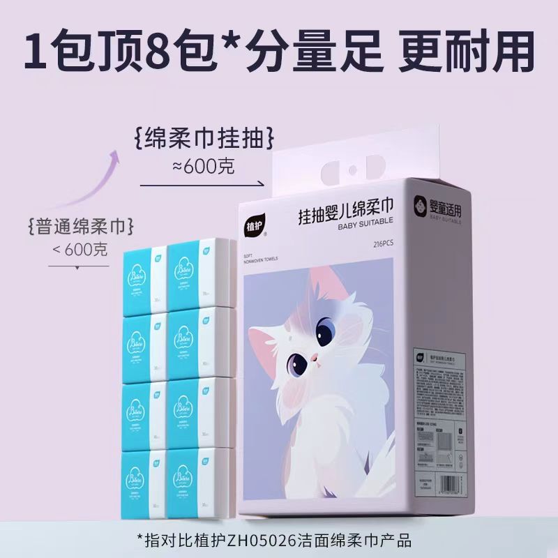 植护壁挂式洗脸巾一次性母婴可用擦脸巾抽取悬挂绵柔巾宝宝洁面巾 - 植初特卖店