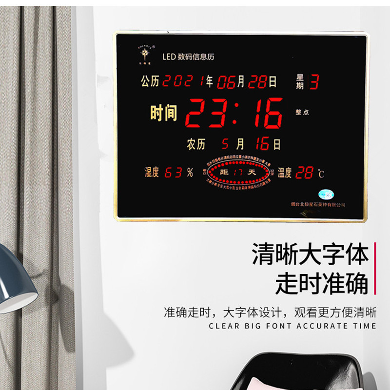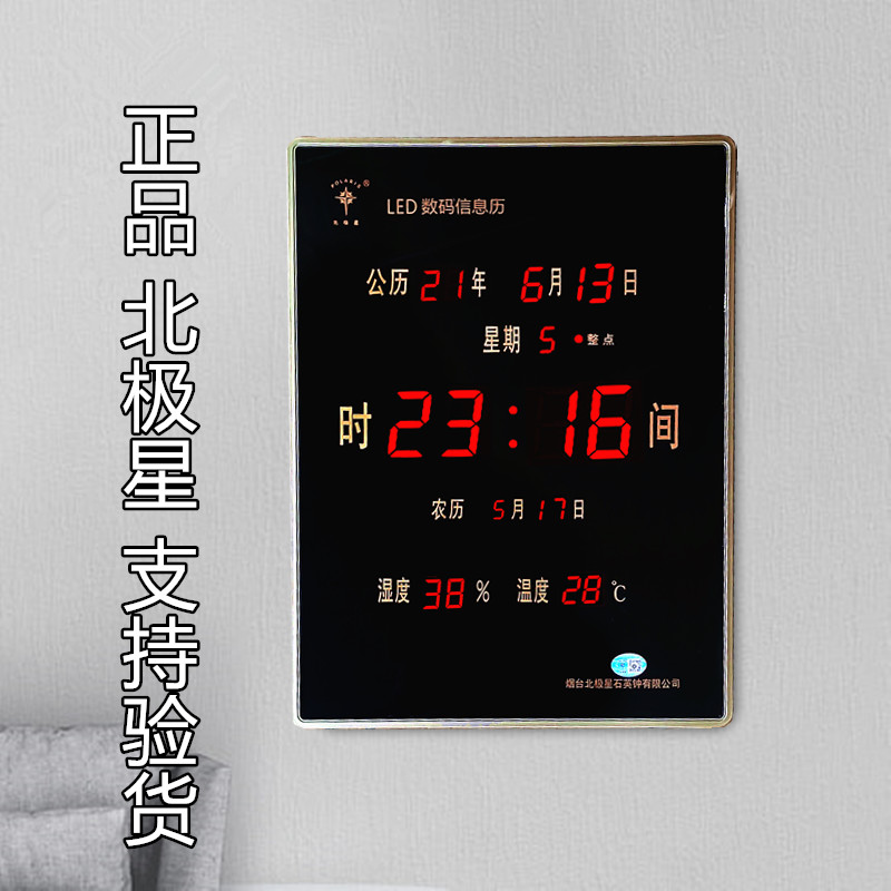 您的位置:他他商城  >   >  北极星万年历家用客厅创意壁挂静音日历夜光LED数码电子钟表