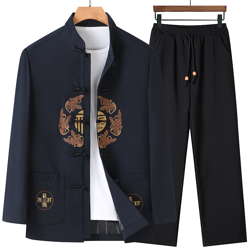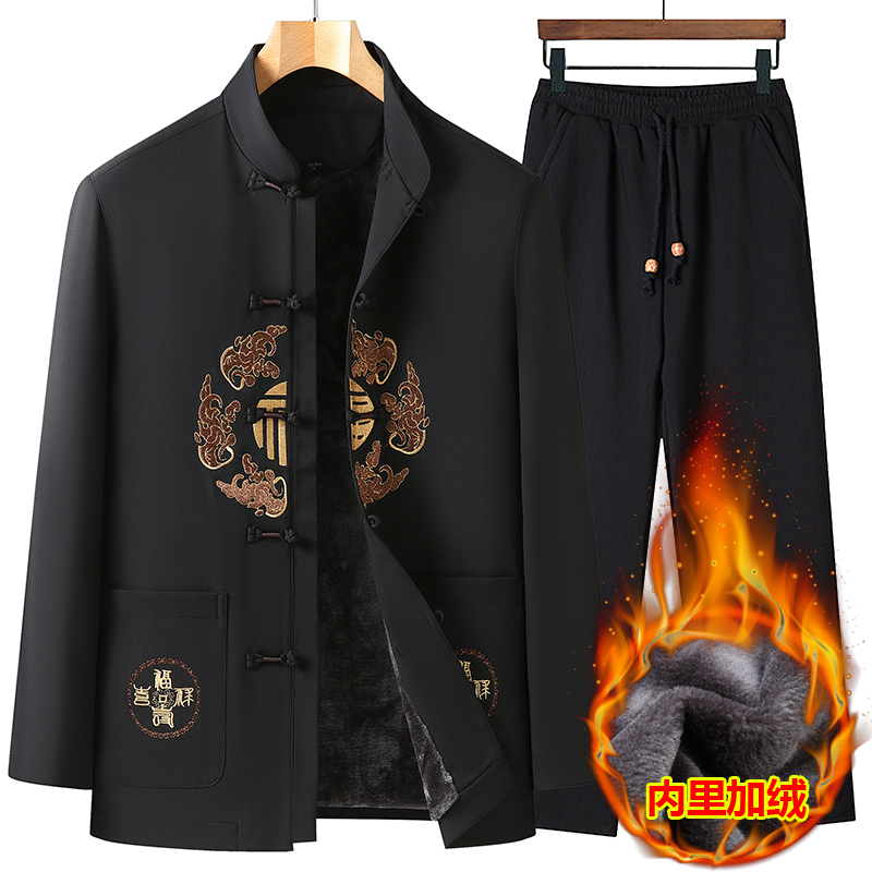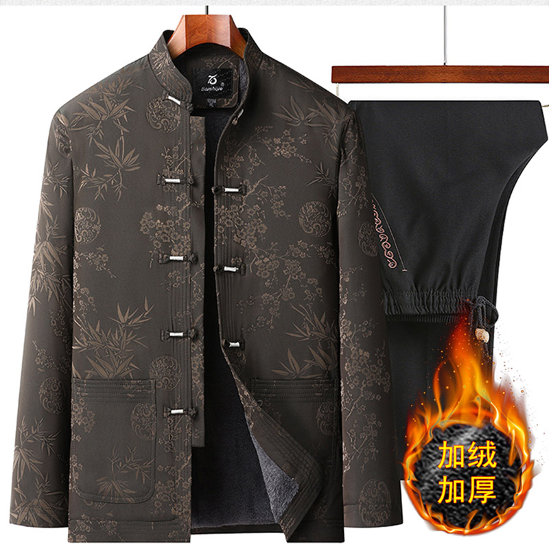 您的位置:他他商城  >   >  冬季唐装男加绒加厚爸爸棉衣外套套装中国风老人爷爷生日夹克春秋