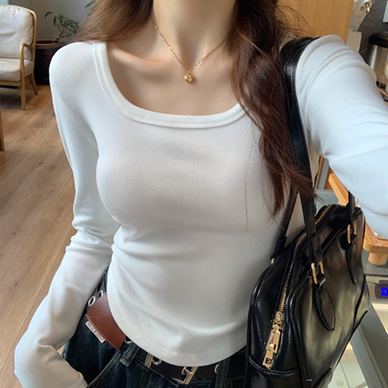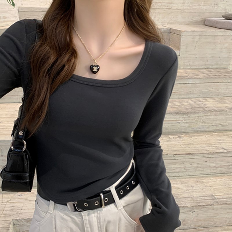 速发2打领底衫秋冬方024新款爆款弧形下摆长袖T恤内搭德绒加厚上 - 安菲优选