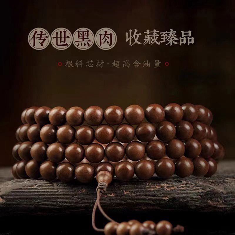 保真印度迈索尔老山檀香手串男天然红黑肉文玩佛珠108颗念珠手链 - 大森沉香 18年实体老店