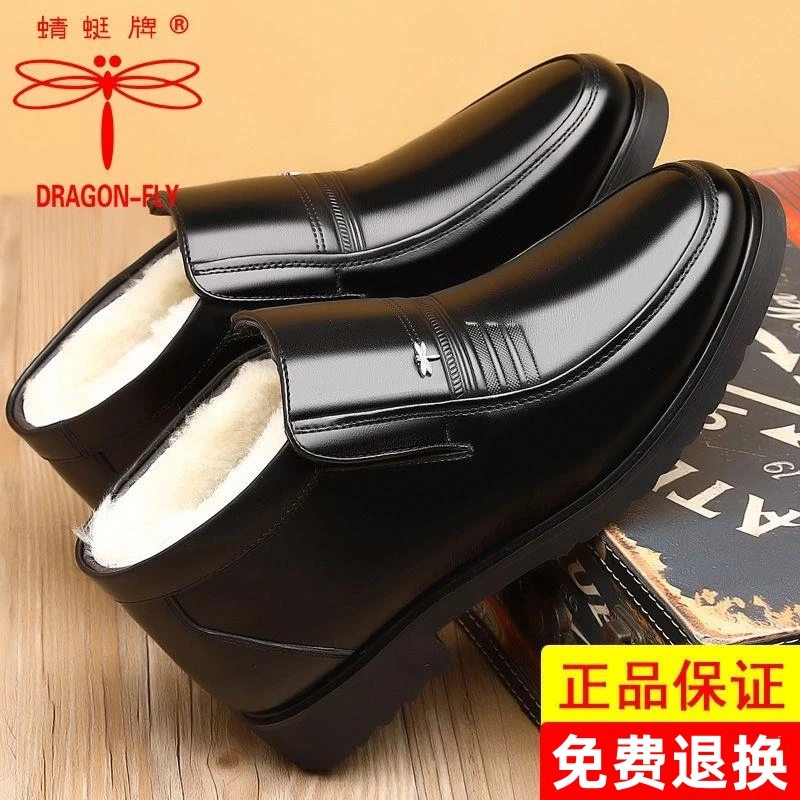 蜻蜓牌冬季加绒保暖棉鞋男商务正装休闲高帮皮鞋软底中老年爸爸鞋 - 浙江蜻蜓牌总店