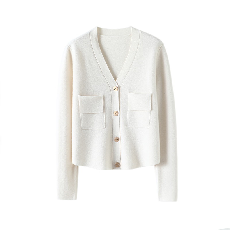 您的位置:他他商城  >   >  好喜欢这个版型!加厚密织羊绒开衫女V领短款纯羊绒毛衣针织外套