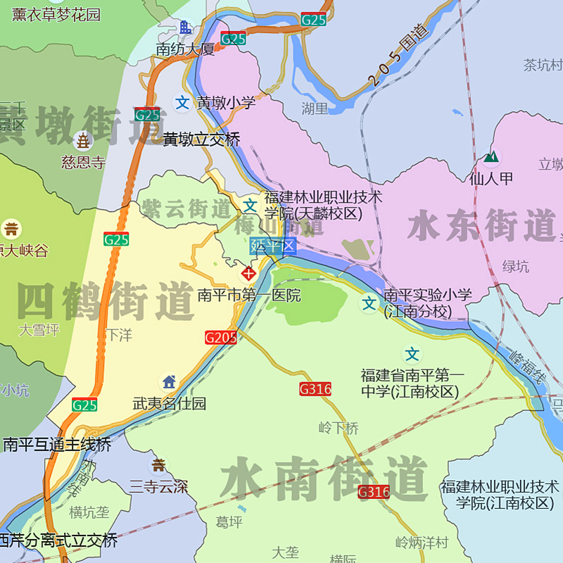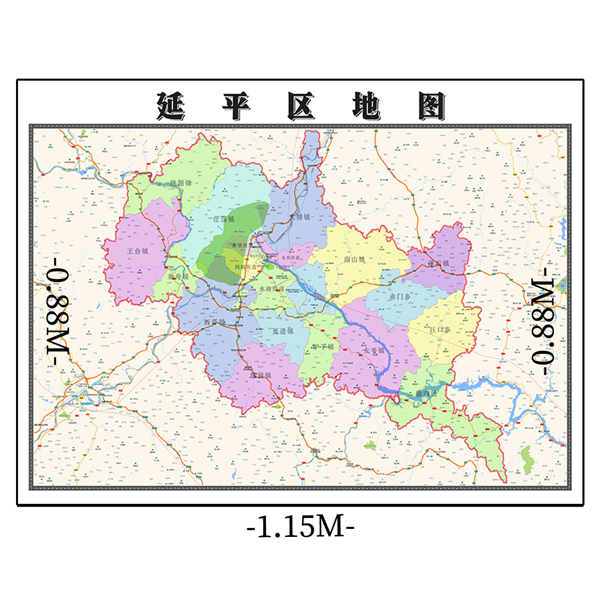 延平区地图1.15m行政交通区域划分新款南平市折叠版高清装饰墙贴