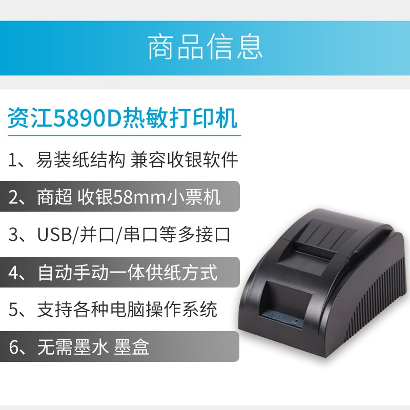 您的位置:他他商城  >  文体  >  资江5890D热敏9针串口打印机 5v8MM收银票据COM并口小票机 RS232