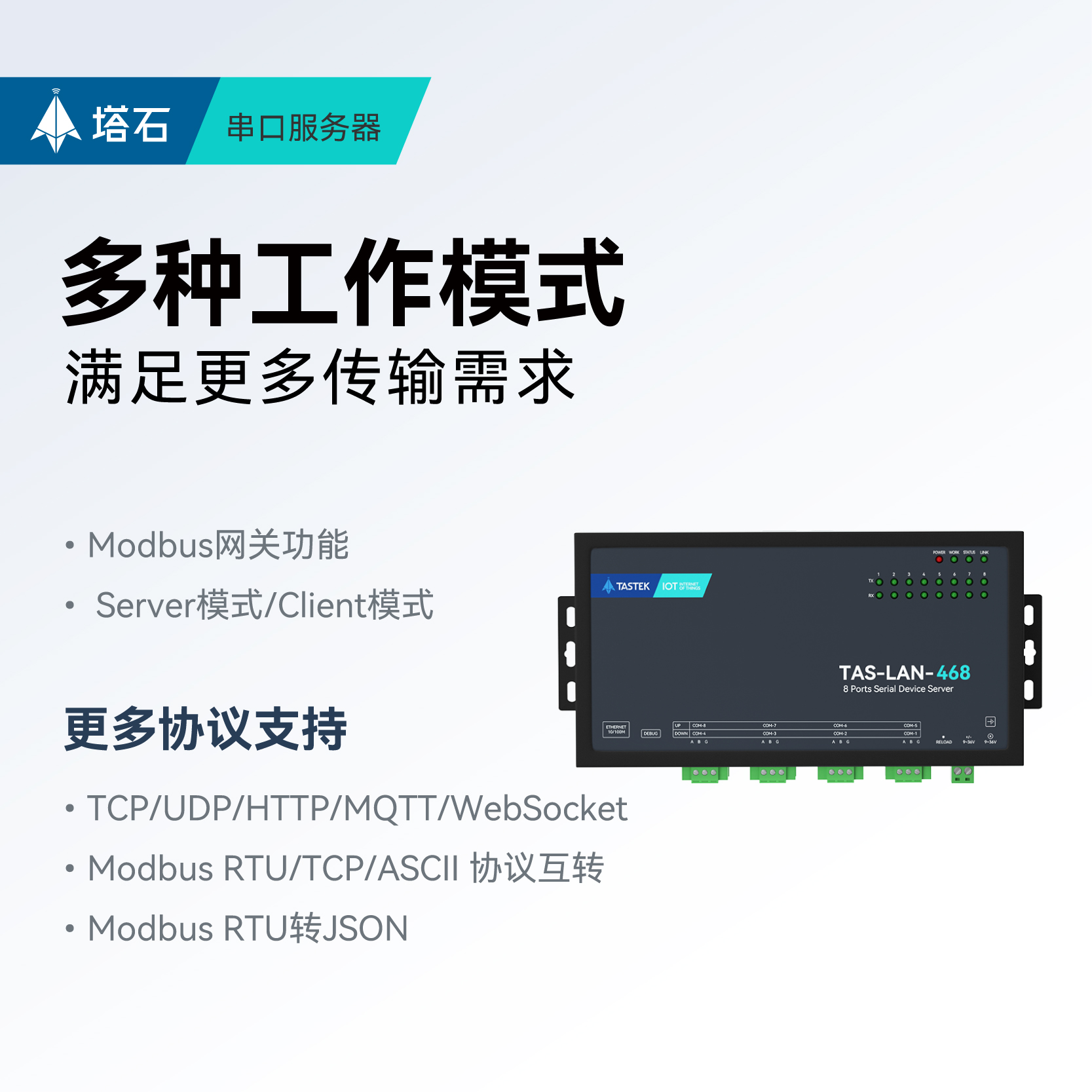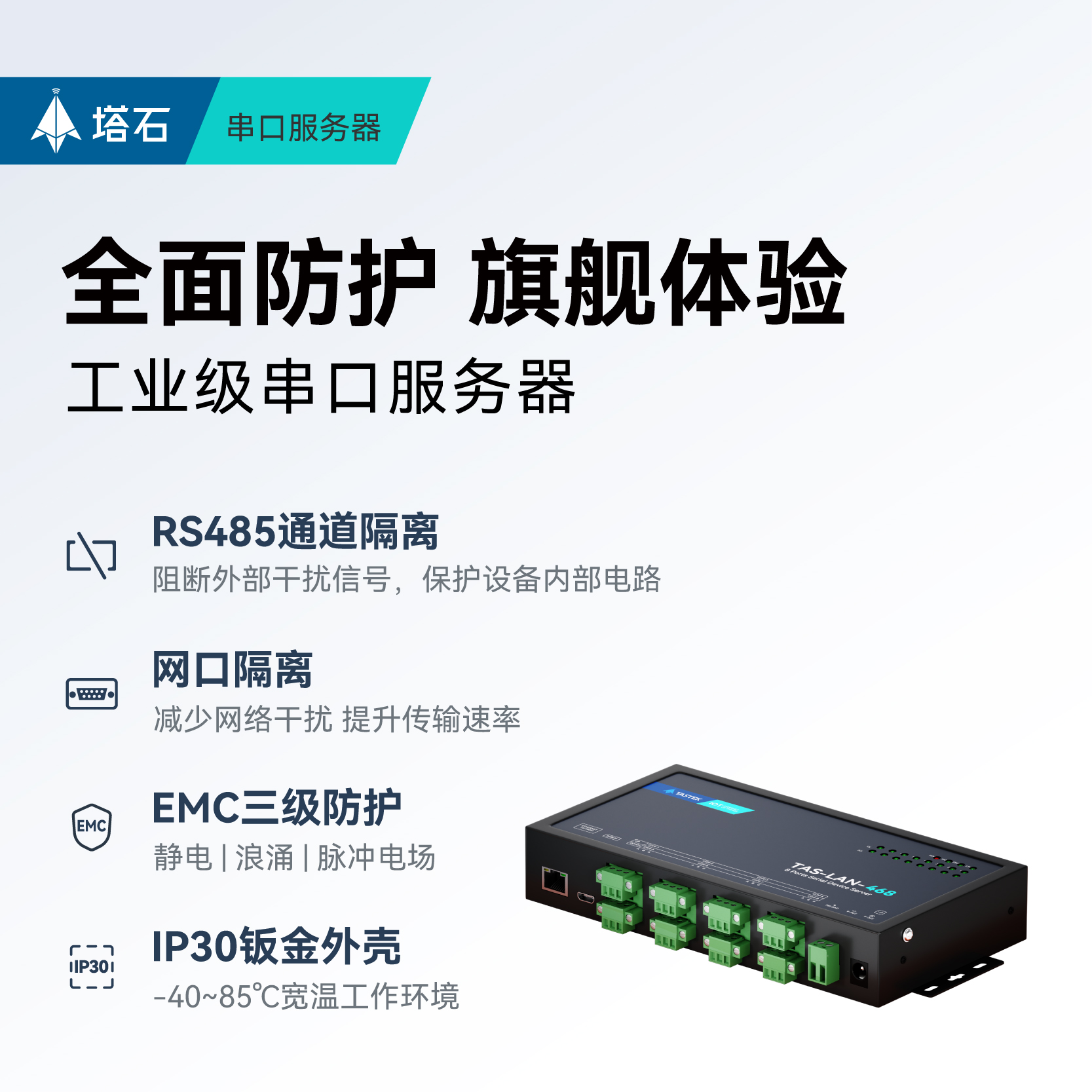 【塔石】工业级8串口通讯服务器8路RS485转以太网网口JSON通信MQTT数据HTTP传输高性能防护NXP模块网关 - 塔石旗舰店