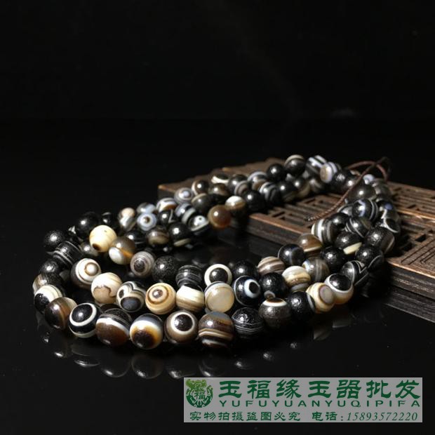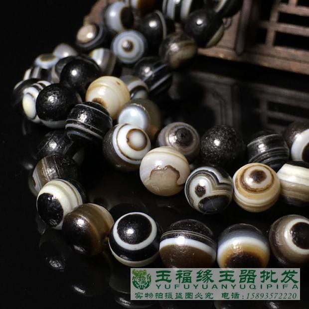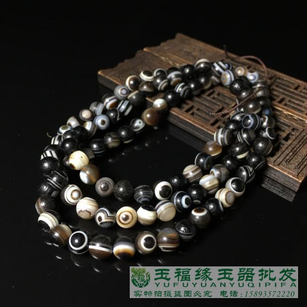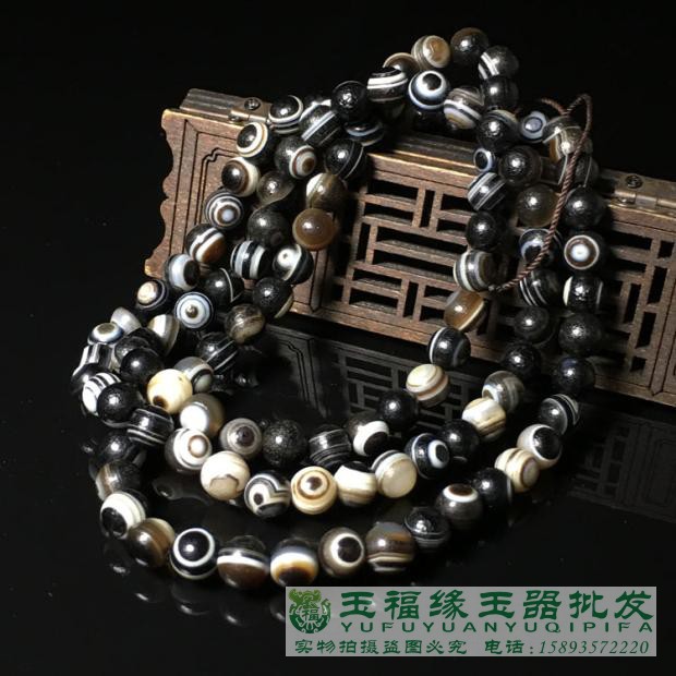 高古天眼缠丝玛瑙药师珠108颗佛珠手串手链男女款包浆风化老玛瑙 - 玉福缘珠宝玉器批发