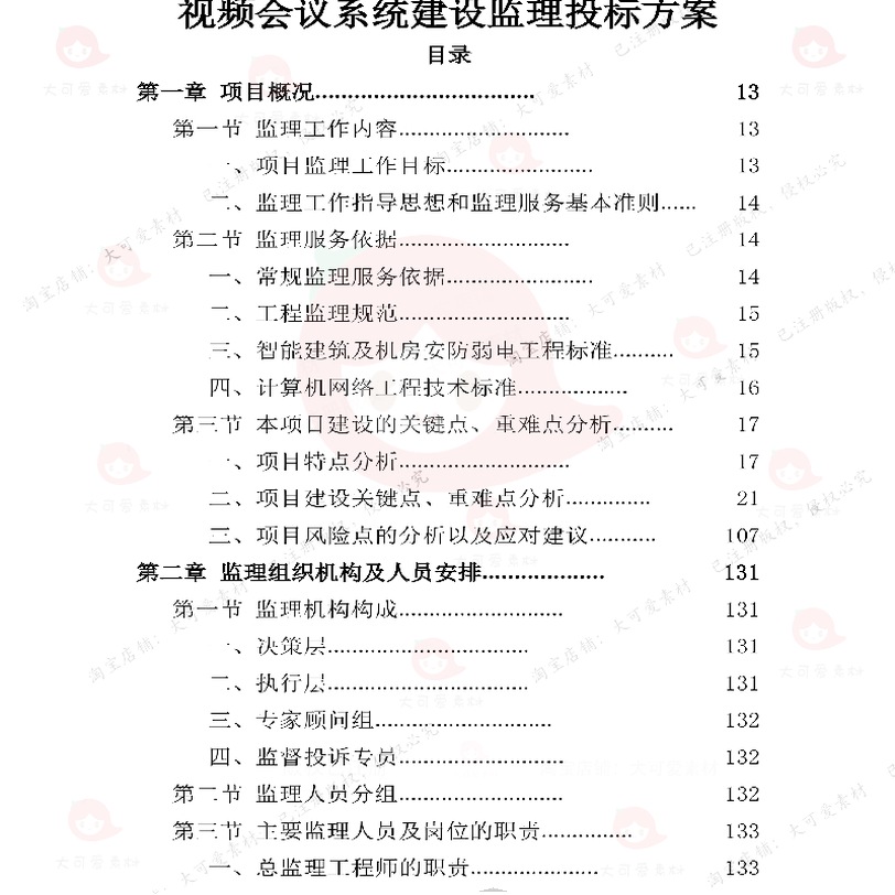 视频会议系统建设监理投标方案 视频会议系可编辑投标word方案统 - 大可爱素材