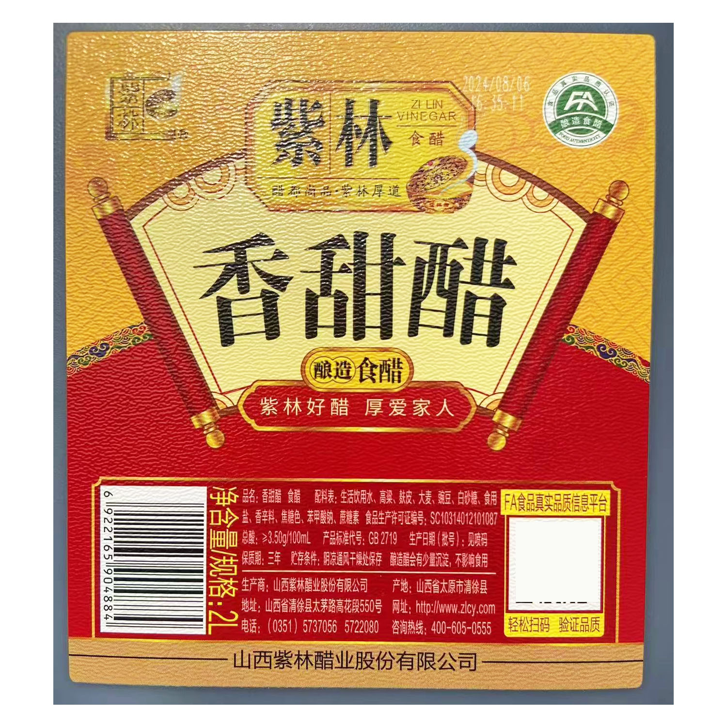 整箱优惠 紫林香甜醋2L山西特产老陈醋粮食酿造食醋甜味糖醋凉拌 - 富华山西特产店