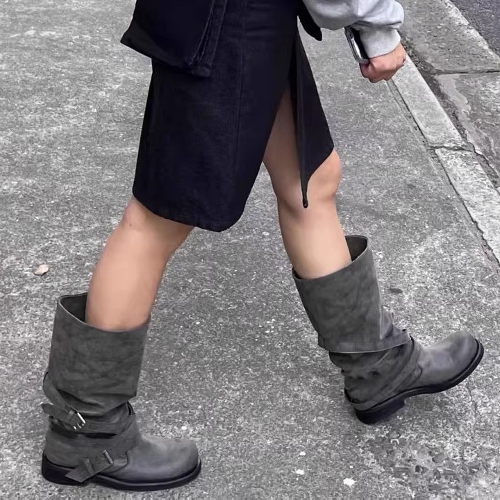您的位置:他他商城  >  鞋子  >  张元英同款皮带扣堆堆靴粗跟复古做旧中筒靴韩版靴子小众工装靴女