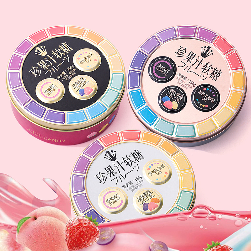 优之唯品维C珍果汁软糖夹心爆浆混合水果味儿童铁盒糖果休闲零食 - 日美食品专营店