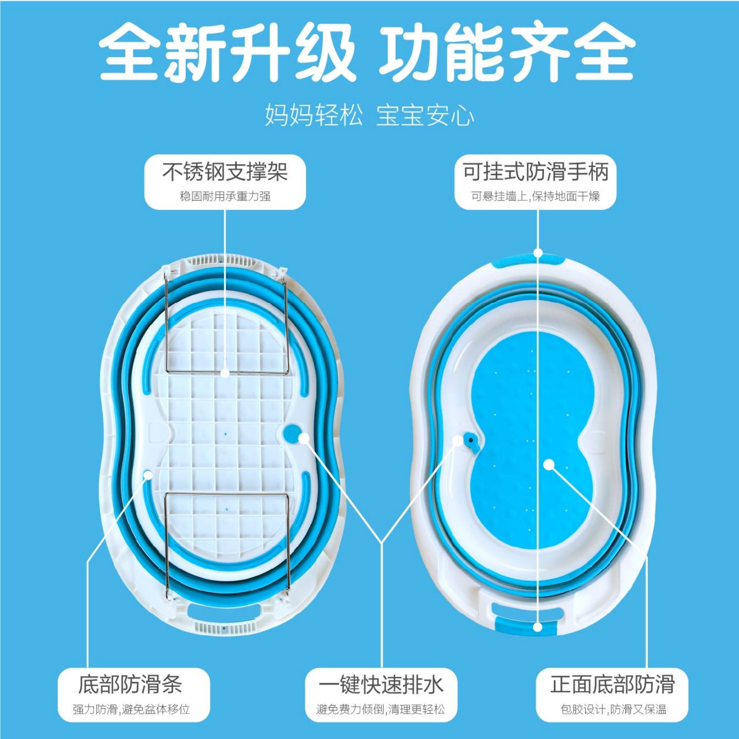 双面防滑婴儿盆折叠盆儿童洗澡盆宝宝泡澡可坐新生盆加大澡盆小孩 - 欧凯家居进出口有限公司