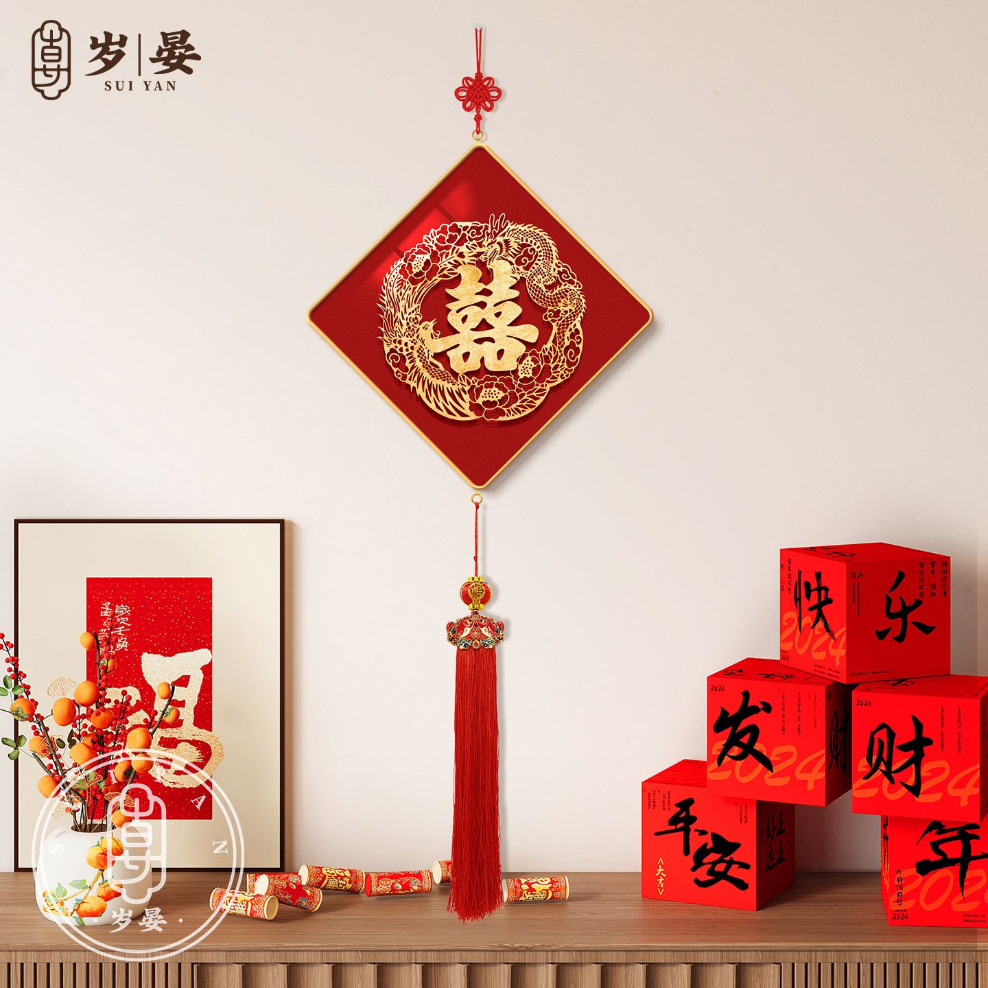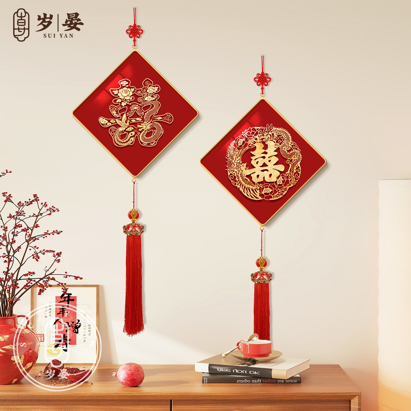 双喜临门菱形挂画喜庆婚房布置装饰壁画送新人喜字祝福挂布装饰画 - 岁晏旗舰店