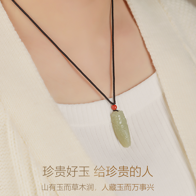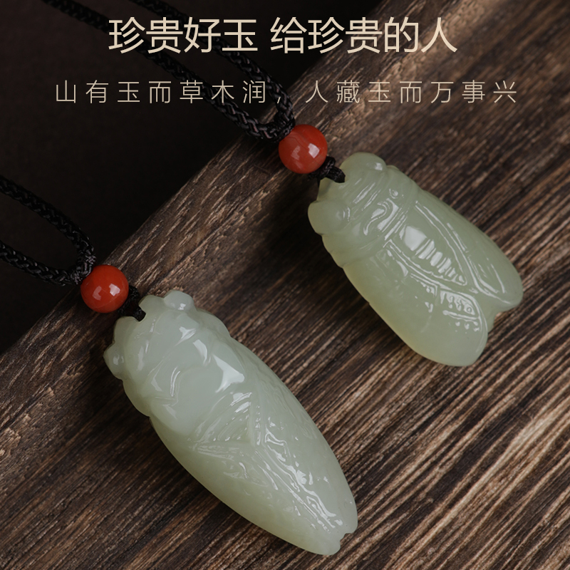 和田玉知了吊坠一鸣惊人金榜题名玉坠白玉蝉挂件玉佩男女款项链 - 若慕旗舰店