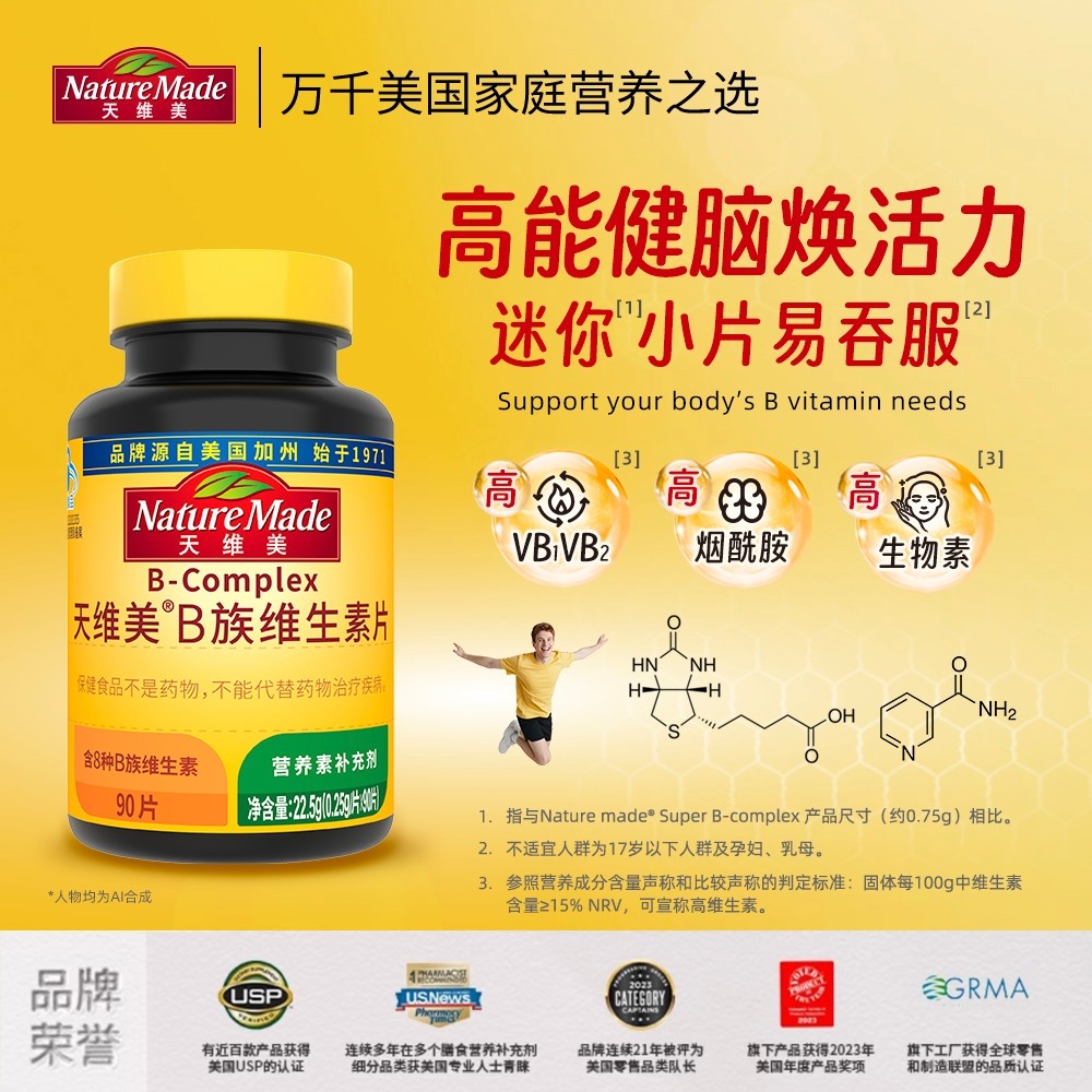 NatureMade天维美B族复合维生素片补充b1b2b6b12男女士正品90片