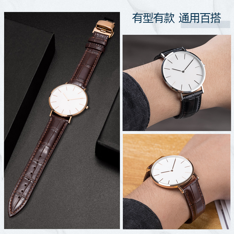 真皮手表带男女蝴蝶扣牛皮表链配件代用dw天梭浪琴天王罗西尼表带 - 丹灵公主旗舰店
