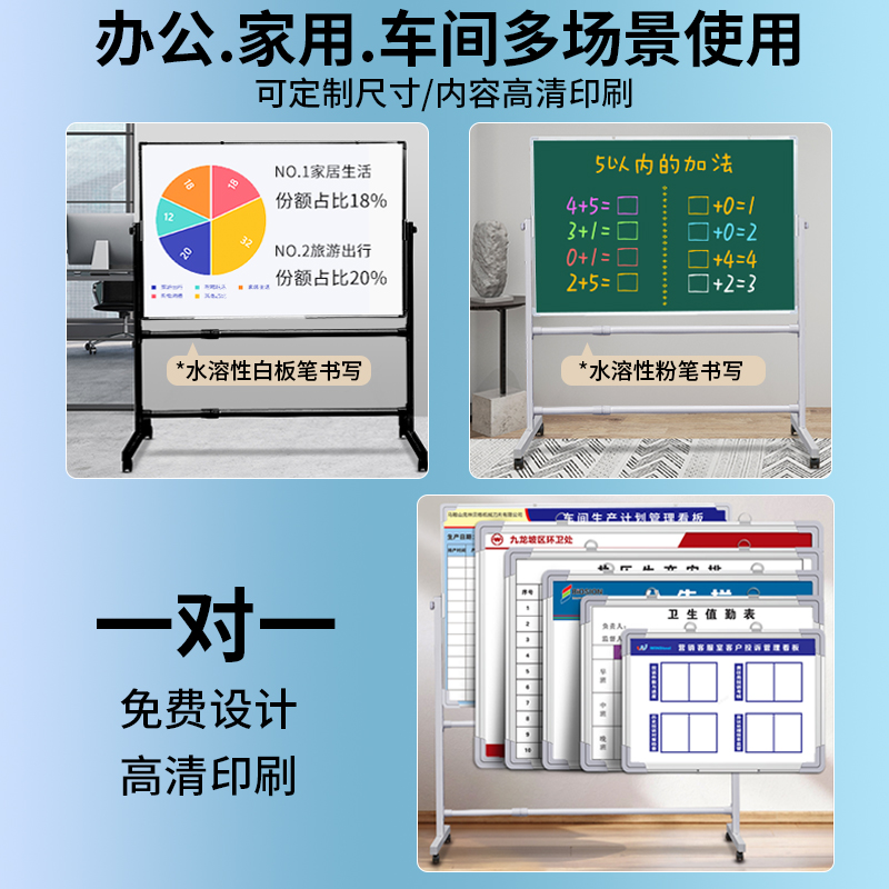 白板写字板支架式移动小黑板商用办公儿童家用教学定制画板双面磁性看板可擦写车间生产立式展示板告示板会议
