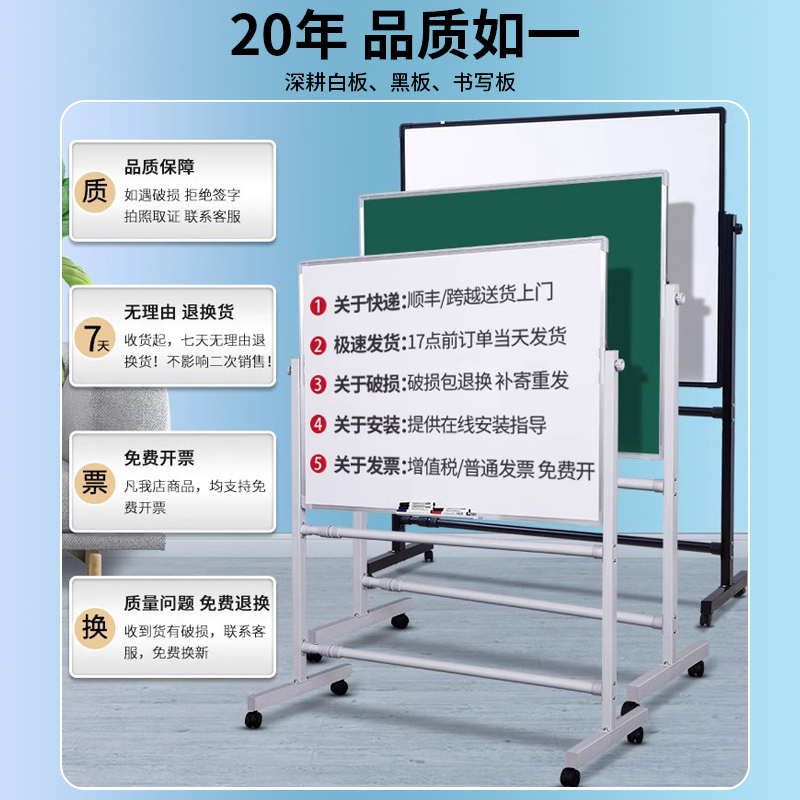 白板写字板支架式移动小黑板商用办公儿童家用教学定制画板双面磁性看板可擦写车间生产立式展示板告示板会议 - 齐富晨挚专卖店