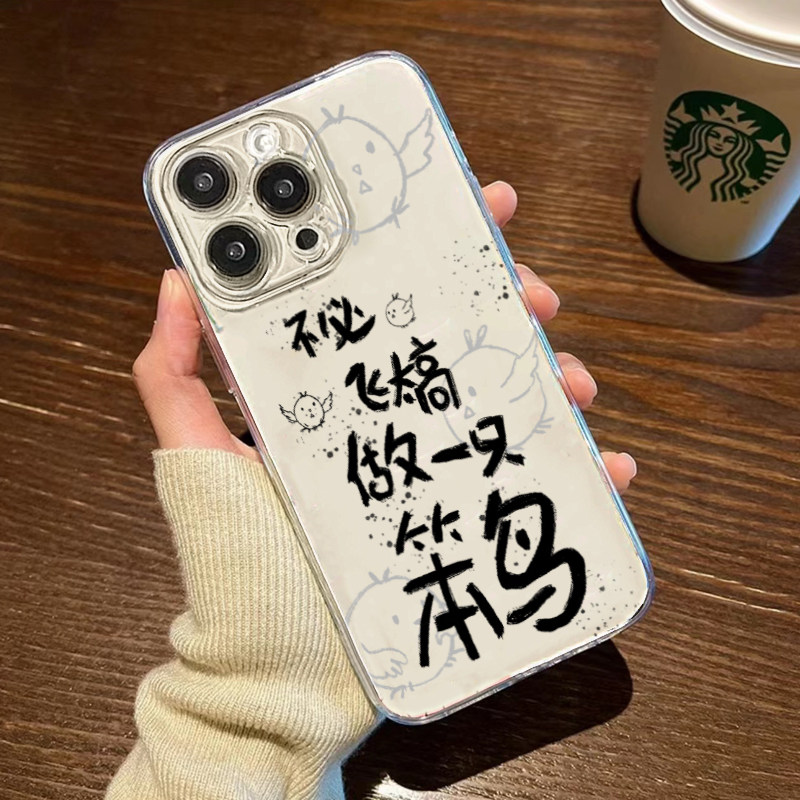 做一只笨鸟适用于苹果15手机壳iPhone14promax红色华为p40vivoy52s12保护套oppo小米14红米k50/60女款13软壳