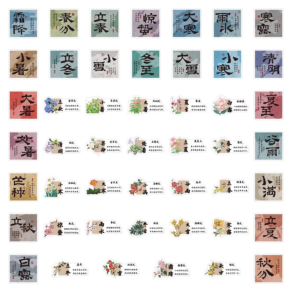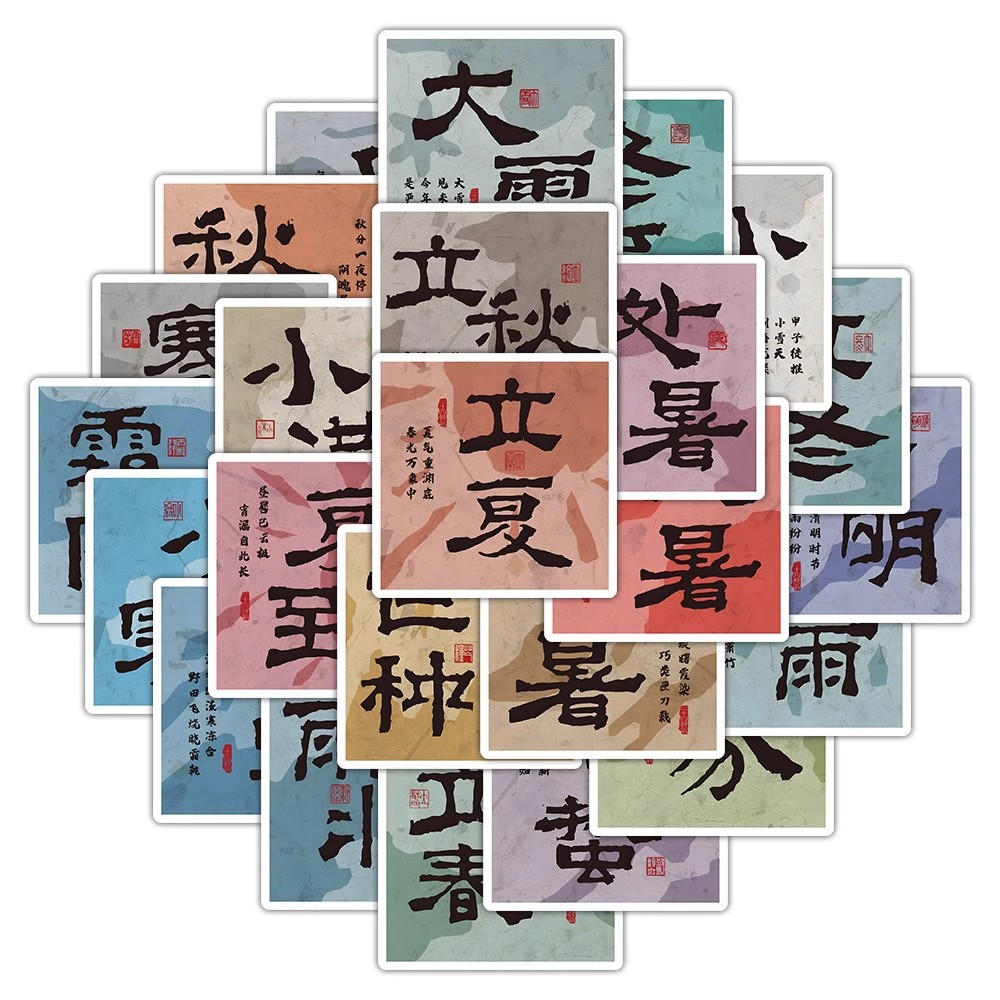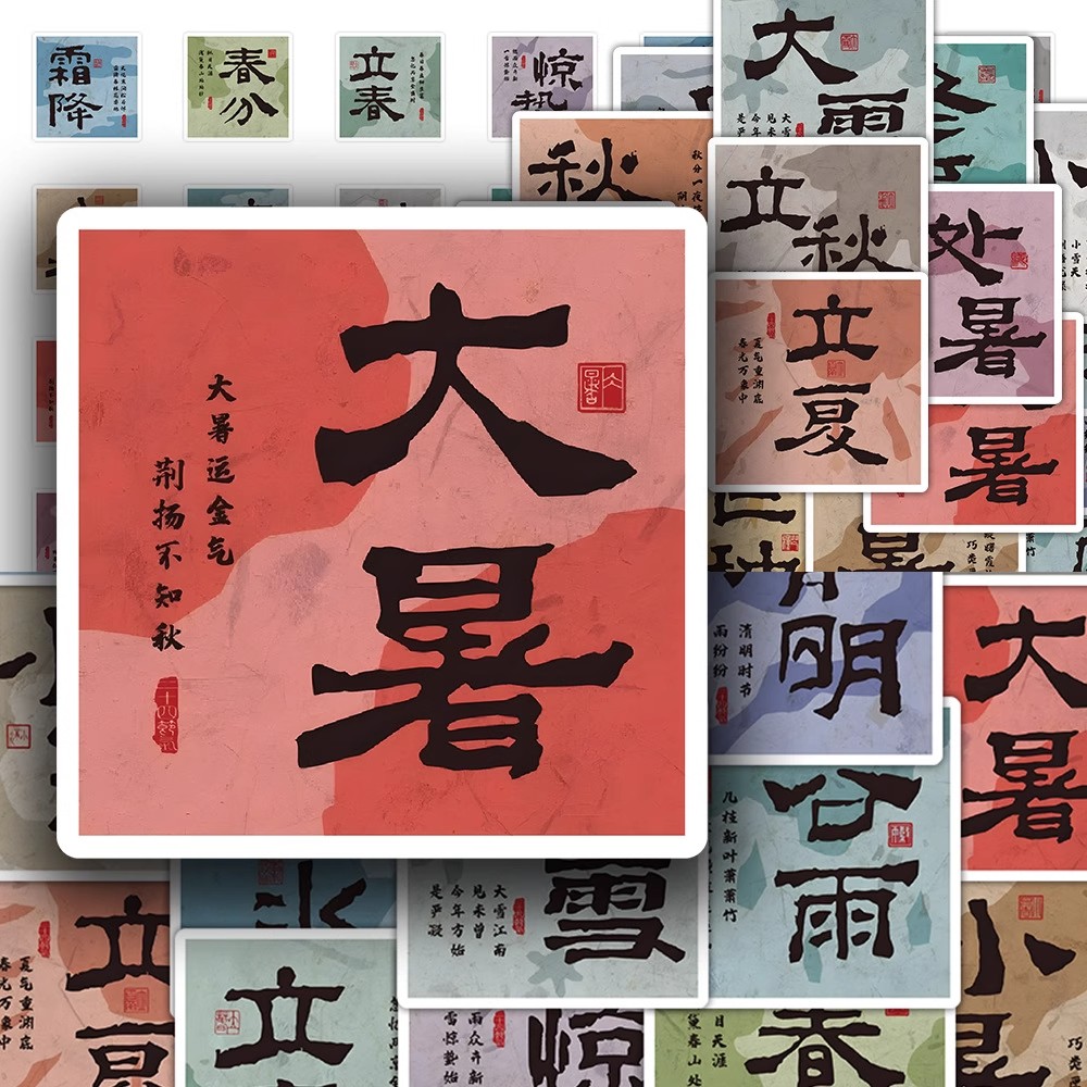 【大图释官方授权】48张24节气文字贴纸文化墙面场景手账素材装饰手账本手机壳玩具墙面国潮风笔记本标签贴画 - 大图释旗舰店