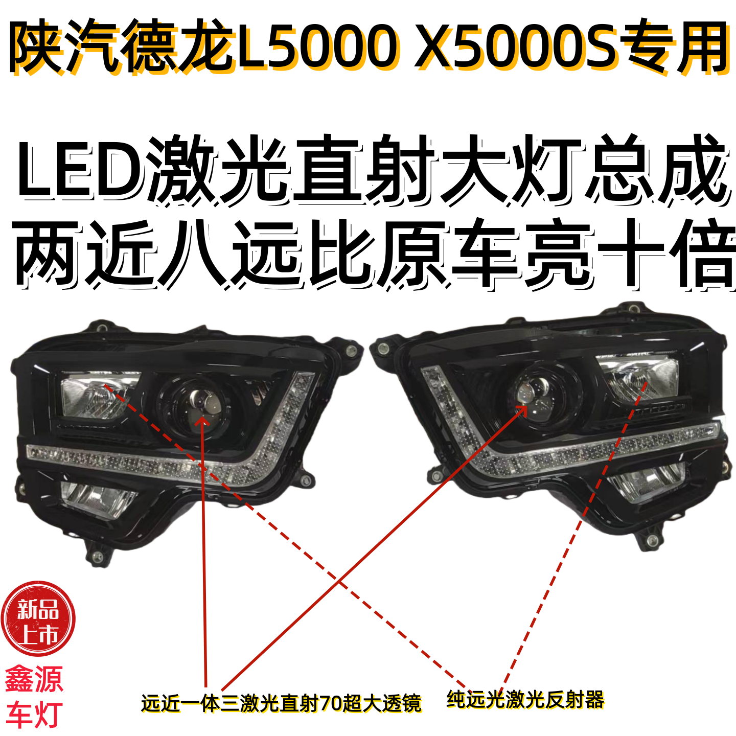 陕汽德龙L5000前大灯总成改装led直射透镜X5000S激光前照灯超亮款 - 润慈汽车配件旗舰店