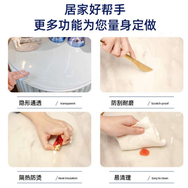 您的位置:他他商城  >   >  pvc软玻璃圆桌布防水防油防烫加厚台布圆形透明餐桌垫桌面保护