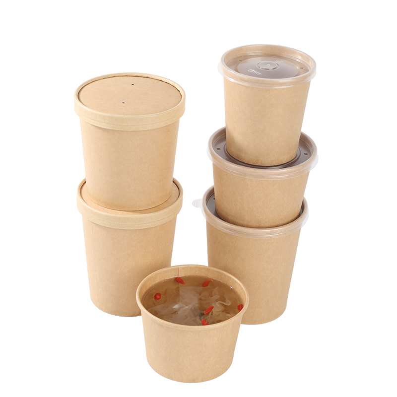 加厚一次性牛皮纸汤桶汤杯商用粥桶带盖外卖纸碗圆形打包盒可微波 - 上海好再来餐饮包装