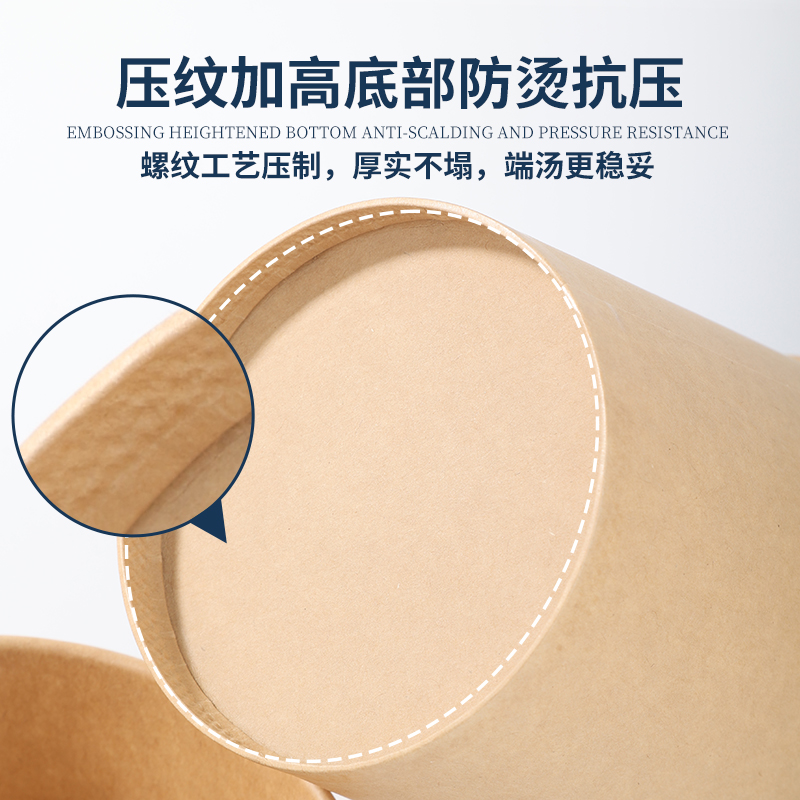 加厚一次性牛皮纸汤桶汤杯商用粥桶带盖外卖纸碗圆形打包盒可微波