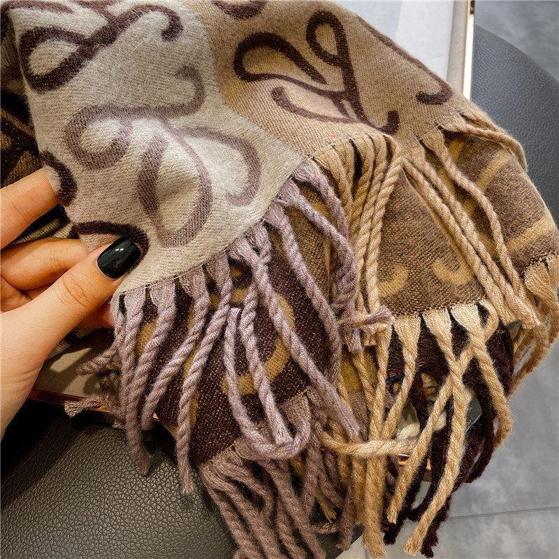 秋冬季新款撞色拼接方格棕色仿羊绒保暖休闲围巾女外搭披肩长流苏 - DYL精品店