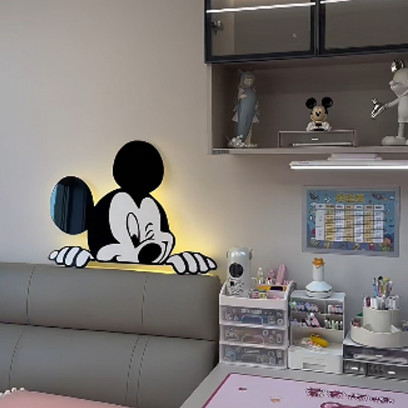 智能语音儿童房床头背景壁灯卡通米奇男女卧室装饰插座式免布线灯 - 益华家居